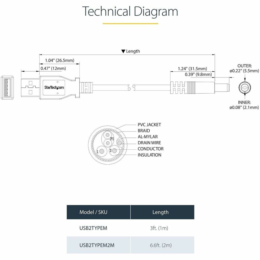 Expertly designed and constructed of high-quality materials, the StarTech.com USB2TYPEM power cable is backed by our lifetime warranty.