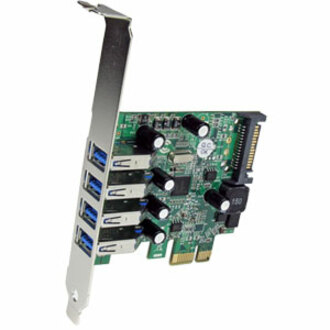 The PEXUSB3S4V PCI Express USB 3.2 Gen 1 Card (with SATA Power) adds 4 external USB 3.2 Gen 1 ports to any PCI Express-enabled computer system with support for data rates up to 5 Gbps, while remaining backward compatible with USB 2.0 / 1.x devices.