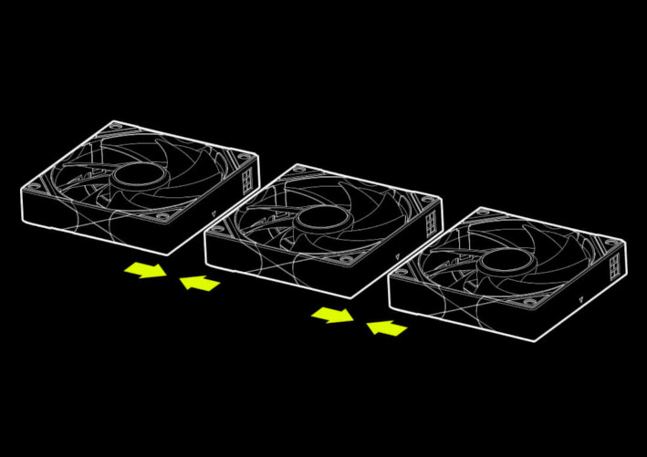 This design also eliminates visible wiring between fans, maintaining a cleaner PC build.