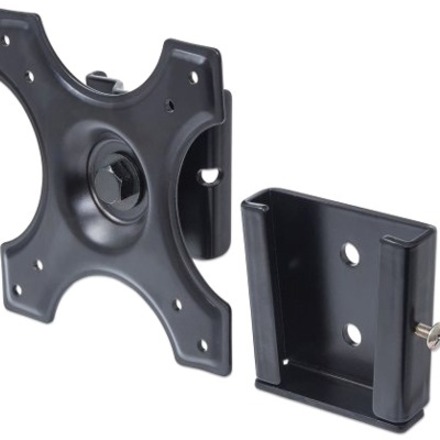 The Manhattan LCD Wall Mount provides a secure and elevated position for a single flat-panel display to help keep valuable desk and work space free and uncluttered. Die-cast in black coating construction and two-piece bracket provide a quick, easy and secure mount to most vertical surfaces. VESA compliant and ready to install with included hardware.