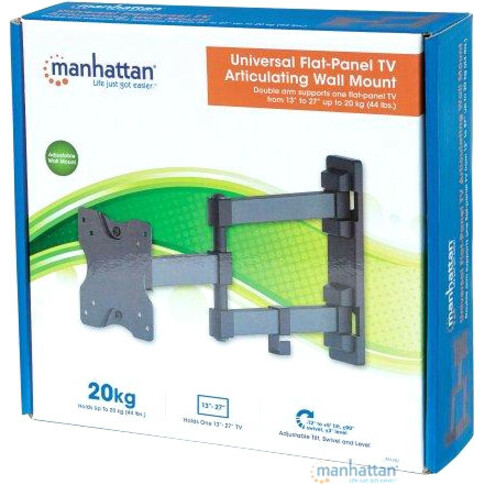 Overcome an odd floor plan, annoying glare or awkward furniture placement that can limit your flat-panel TV experience. The Manhattan Universal Flat-Panel TV Articulating Wall Mount folds nearly flat against the wall and safely extends on a strong, double-arm frame that helps you achieve prime viewing positions from almost anywhere in the room. VESA-compliant and constructed of quality materials, this articulating wall mount fits a range of display sizes for a secure and confident above-the-floor TV installation. It's the perfect fit for mounting a TV in your living room, bedroom or den, as well as for commercial uses in hotels, classrooms, conference rooms, for digital signage and more. The Manhattan Universal Flat-Panel TV Articulating Wall Mount brings your TV enjoyment front and center.