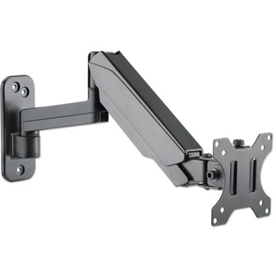 The Manhattan Universal Gas Spring Monitor Mount offers a single-jointed gas-spring arm that securely holds one 17" to 32" TV or monitor. This mount's gas spring promotes easy movement of the display to a more comfortable viewing angle with the lightest touch. Designed to give back much needed desktop real estate and maximize productivity, the Manhattan Universal Gas Spring Monitor Mount provides more flexibility, reach, and overall enjoyment of whatever task is at hand.